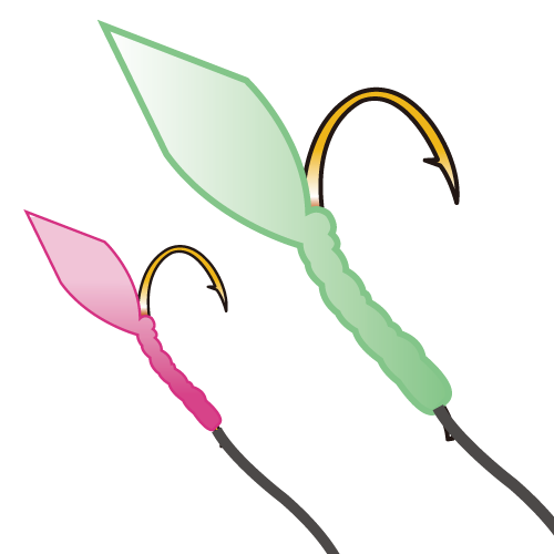 제방이나 호안에서 작은 전갱이를 노리기에 가장 좋은 것이 작은 물고기를 한번에 여러마리 잡을 수 있는 사비키낚시입니다. 여기서는 줄늘임낚시(たらし釣り), 원투찌낚시(遠投ウキ釣り)를 소개합니다.